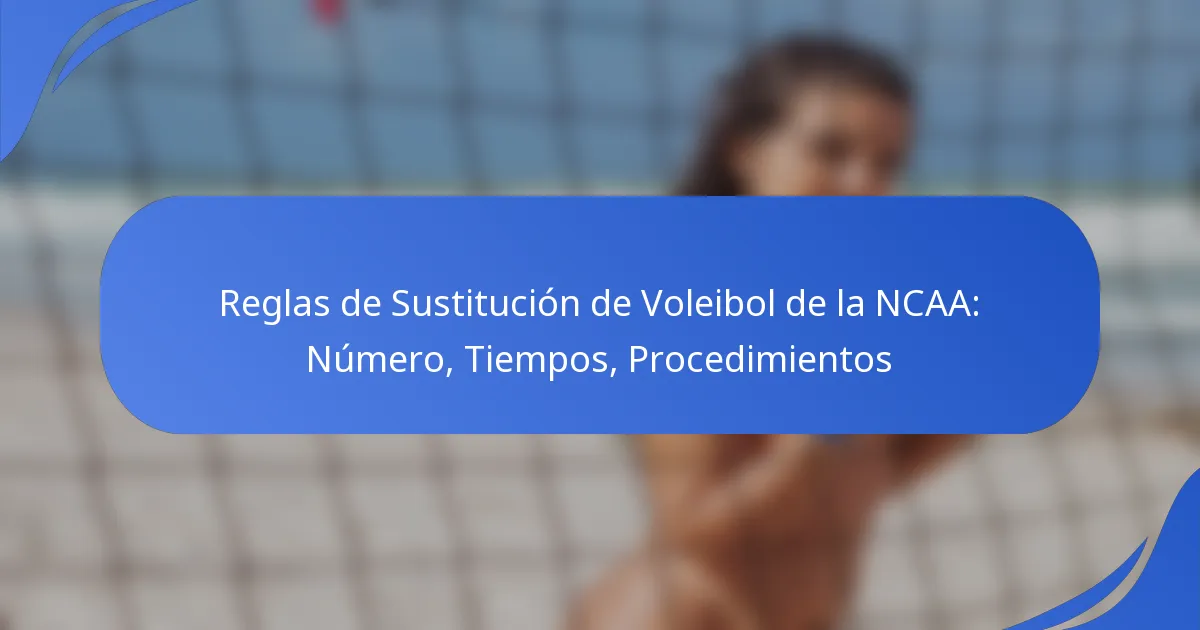 Las reglas de sustitución del voleibol de la NCAA delinean el marco de cómo y cuándo los jugadores pueden entrar y salir del juego, asegurando un flujo suave mientras permiten una gestión efectiva del equipo. Cada equipo tiene permitido hasta 15 sustituciones por partido, que pueden ser utilizadas estratégicamente a lo largo de todos los sets. Las sustituciones generalmente se realizan durante las detenciones en el juego, como tiempos muertos o balones muertos, permitiendo a los entrenadores adaptar sus alineaciones según sea necesario.